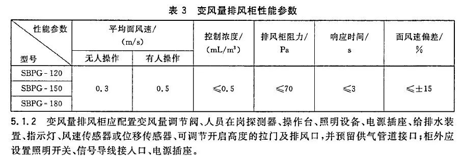 5.1.3 變風量排風柜的面風速在全開啟和部分開啟時應控制在0.3m/s-0.5m/s范圍內,特殊工藝需要時面風速可由工藝確定。