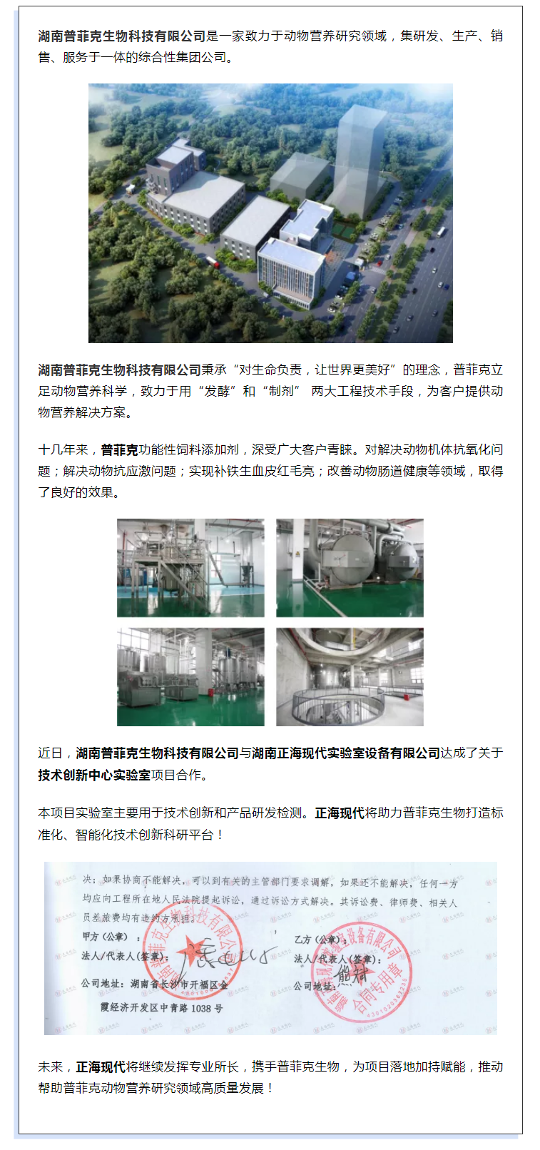 【簽約喜訊】正海現(xiàn)代成功簽約《普菲克生物技術(shù)創(chuàng)新實(shí)驗(yàn)室裝修工程項(xiàng)目》
