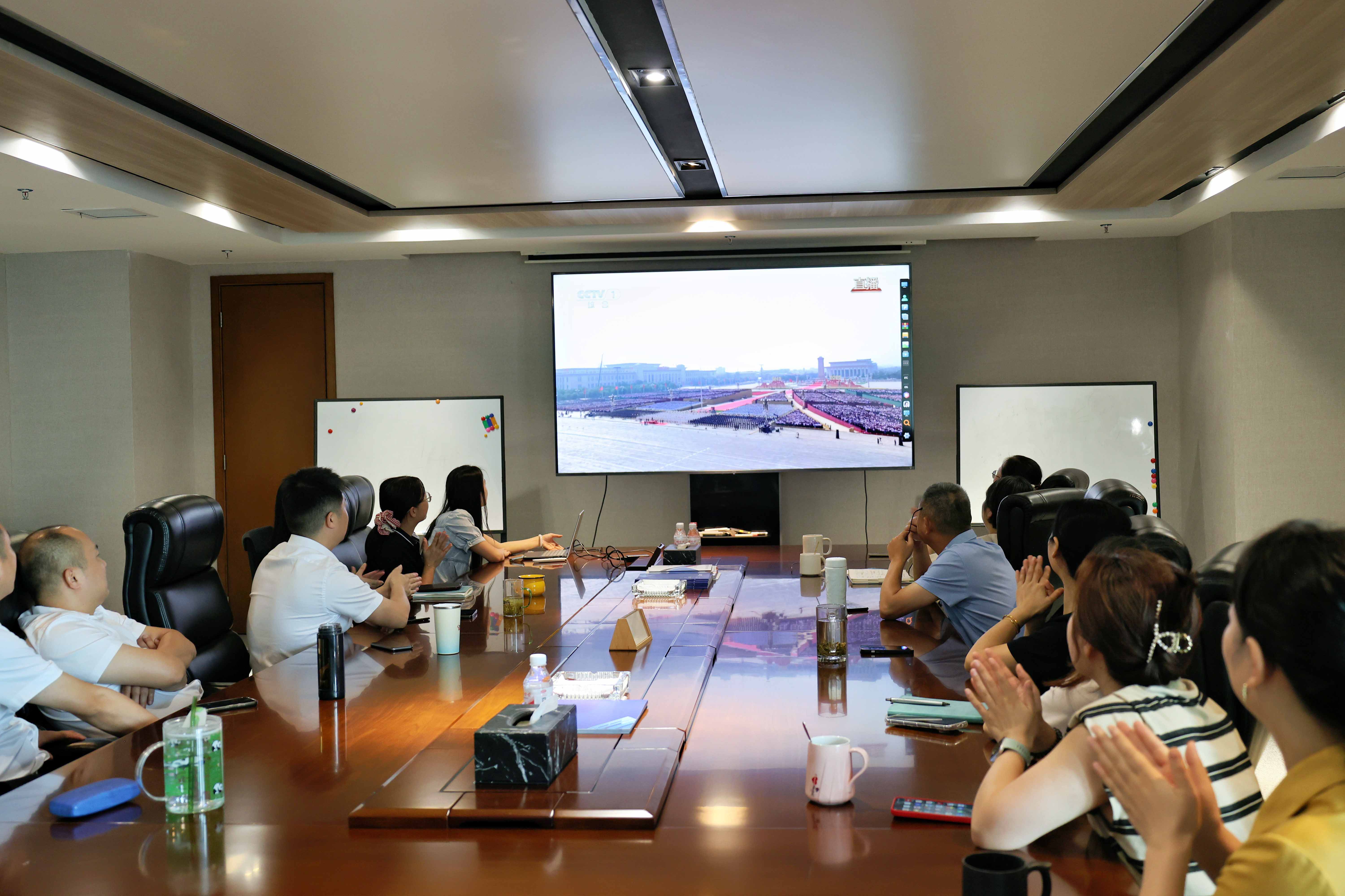 上午 9時,員工們整齊地坐在公司會議室,等待閱兵儀式正式開始,聚精會神地注視著大屏幕。當習近平總書記檢閱部隊的畫面出現時,全場氣氛莊重而熱烈。此次閱兵是全面推進中國式現代化進入新征程的首次閱兵,也是人民軍隊奮進建軍百年的嶄新亮相。
