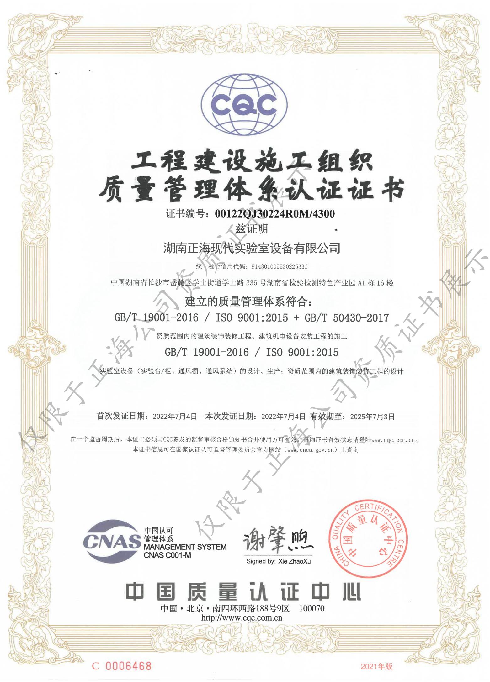 質量管理體系認證證書